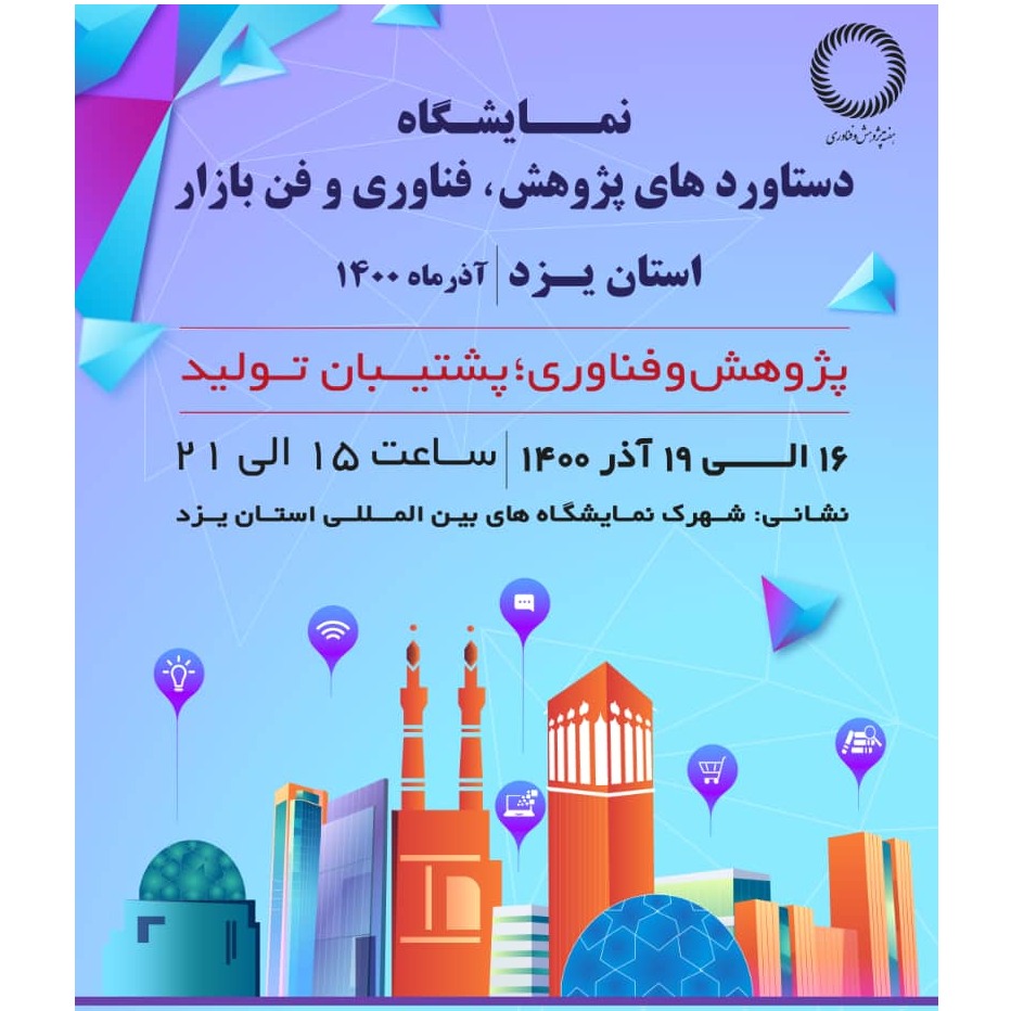 نمایشگاههای پژوهش، فناوری و فنبازار با حضور بیش از صد شرکت از بخشهای مختلف پژوهشی و فناورانه، در شهرک نمایشگاههای بینالمللی یزد برپا میشود و زمینهساز صنعت میان صنعت، پژوهش و بازار خواهد بود.