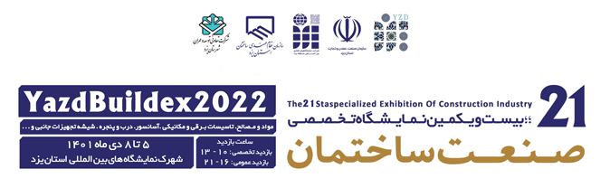 بیست و یکمین نمایشگاه تخصصی صنعت ساختمان (YAZD BUILDEX 2022) ۵ الی ۸ دی ماه از ساعت ۱۰ الی ۱۳ پذیرای متخصصان و از ساعت ۱۶ الی ۲۱ برای بازدید عموم در شهرک نمایشگاه های بین المللی یزد دایر خواهد بود.